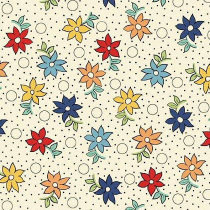 Quilting Treasures - Audrey - Retro Floral & Circles, Ecru