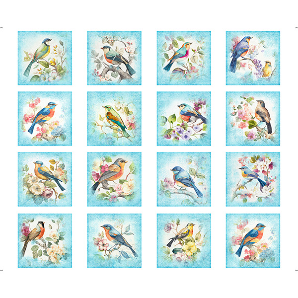 Detailed renderings of various birds, flora, feathers, birds’ nests, and birdhouses evoke a feeling of a peaceful garden vista. A soft, ephemeral print adds sophistication and femininity. Unique quilts, home décor accents, and endless project possibilities await!