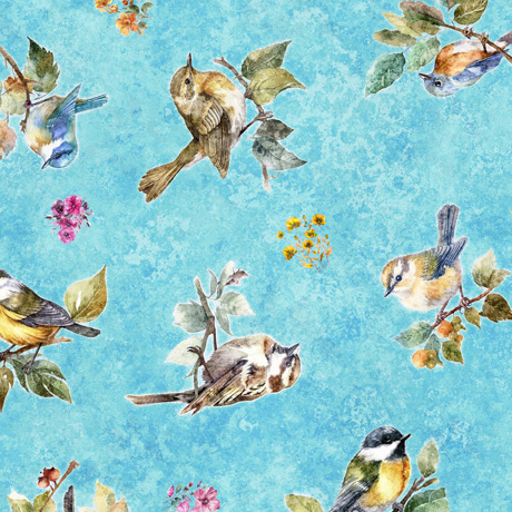 /Shopping/Fabric/Fabric (Shop By Manufacturer)/Quilting Treasures/Birdsong/Quilting Treasures - Birdsong - Bird Toss, Aqua