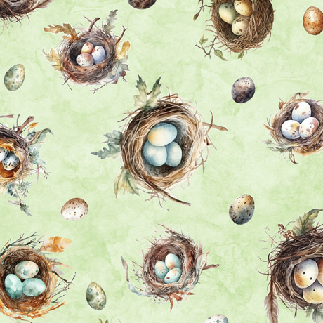 Detailed renderings of various birds, flora, feathers, birds’ nests, and birdhouses evoke a feeling of a peaceful garden vista. A soft, ephemeral print adds sophistication and femininity. Unique quilts, home décor accents, and endless project possibilities await!