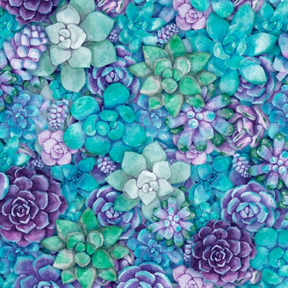 Quilting Treasures - Blossom - Mixed Succulents, Blue