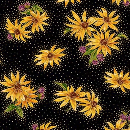 Quilting Treasures - Botanical Harvest - Sunflower & Berry Toss, Black