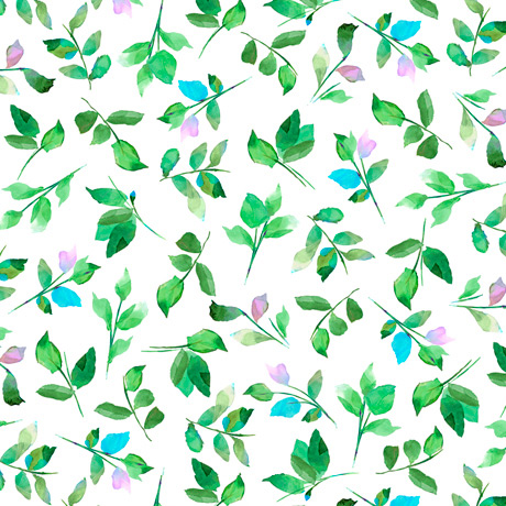 Quilting Treasures - Charlene - Leaf Sprigs, Green/White