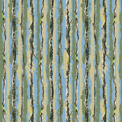 Quilting Treasures - Chickadees - Tree Bark Stripe, Blue