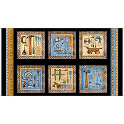 Quilting Treasures - Craftsman - Tool Picture Patches 24" Panel, Black