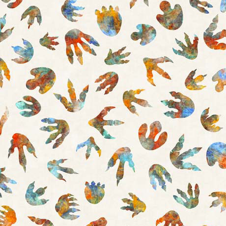 Quilting Treasures - Dinoroars! - Dino Track, Beige
