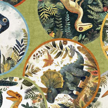 Quilting Treasures - Dinoroars! - Dinosaurs Medallions, Olive