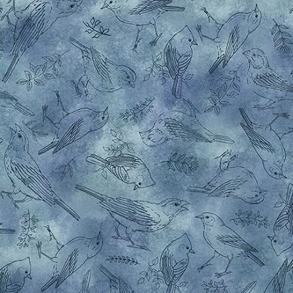 Quilting Treasures - Drawn to Birds - Bird Toile, Blue