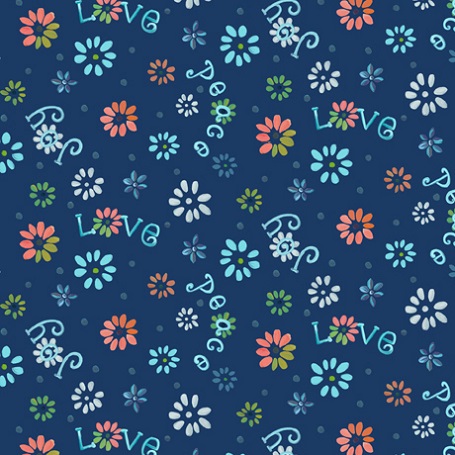Quilting Treasures - Enchanted Garden - Ditsy Flowers, Royal Blue
