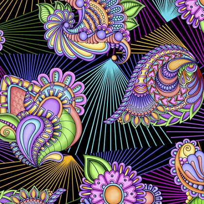 Quilting Treasures - Festival - Floral Paisley Prism, Black