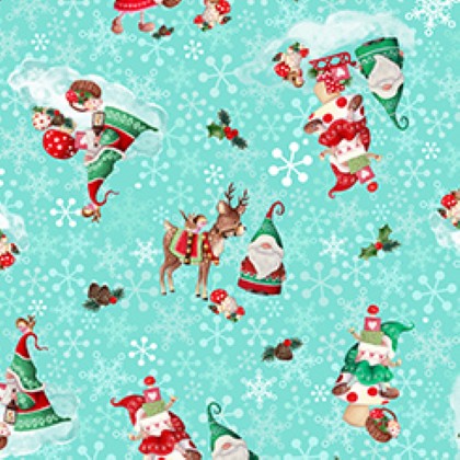Quilting Treasures - Gnome For The Holiday - Christmas Gnomes Toss, Turquoise