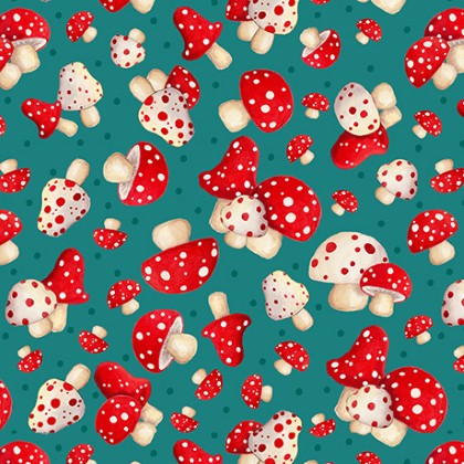 Quilting Treasures - Gnome For The Holiday - Mushroom Toss, Teal