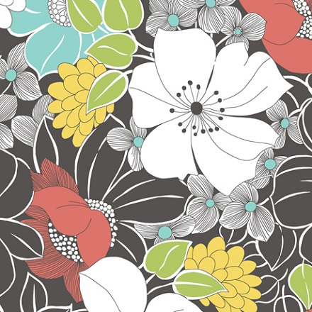 Contemporary print in fun colors. Playful florals and chevrons in aqua, coral, navy and purple. Design a quilt, create home décor or make a tote bag! Add a little color to your life!