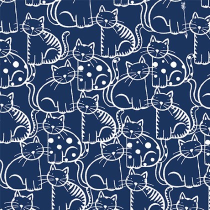 Quilting Treasures - Meow Meow Meow - Packed Cats, Navy