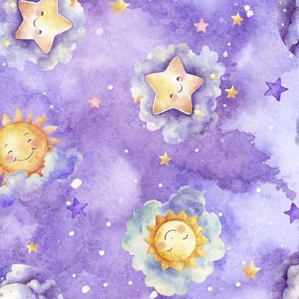 An adorable menagerie of animal friends in hot air balloons fly high in the sky and will take your little one to a dreamland. Soft, warm hues of blue, lavender, gray, and white anchor the whimsical design of this sweet collection. A perfect choice for a child’s nursery, baby accessories, and sweet apparel.