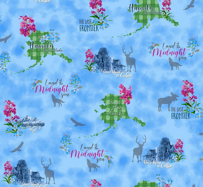 Quilting Treasures - Once Upon A Cabin - Alaskan Map, Blue
