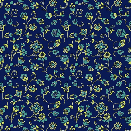 Quilting Treasures - Oxford Revival - Flower With Dotted Scroll, Navy