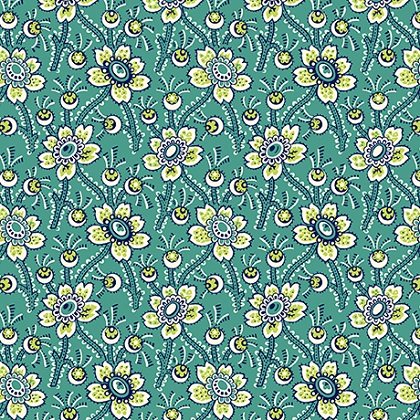 Quilting Treasures - Oxford Revival - Packed Floral, Jade