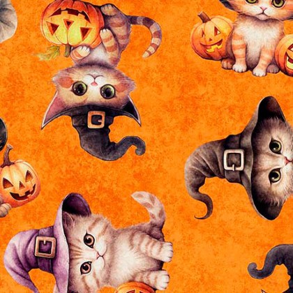 /Shopping/Fabric/Fabric (Shop By Manufacturer)/Quilting Treasures/QT Cuties/Quilting Treasures - QT Cuties - Halloween Kittens, Orange