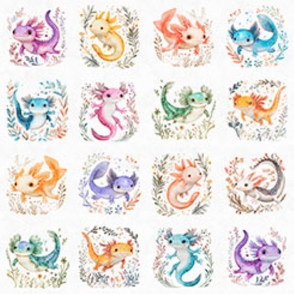 Quilting Treasures - QT Cuties 2 - A Lotta Axolotl Vignettes, White