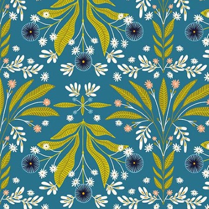 Fanciful foliage and romantic vines offer a unique juxtaposition of design and unexpected color. Create quilts, home décor accents, and unique accessories with this on-trend, chic ensemble. ©Kate Lower for Ink & Arrow