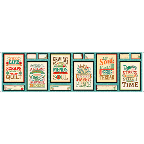 Quilting Treasures - Sewing Mends the Soul - Sewing Phrases Patches Panel, Multi