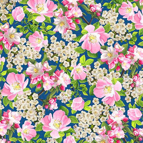 Quilting Treasures - Songs of Nature - Packed Dogwoods, Navy