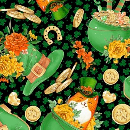 Quilting Treasures - St. Pat's & Cats - St. Pat's & Cats Medley, Black