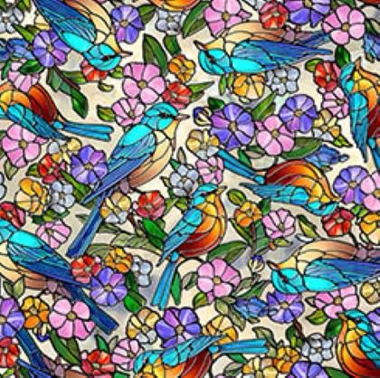 Quilting Treasures - Sunlit Birds - Stained Glass Birds & Floral, Tan