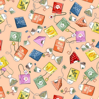 Quilting Treasures - Tea Time - Teabags Toss, Peach