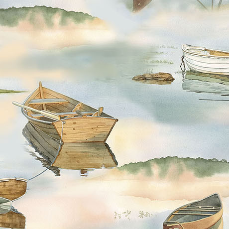 Quilting Treasures - Tranquility - Boats on Water, Blue
