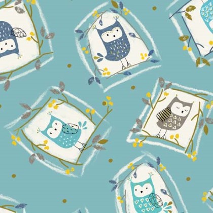 /Shopping/Fabric/Fabric (Shop By Manufacturer)/Quilting Treasures/What A Hoot/Quilting Treasures - What A Hoot - Framed Owls, Aqua
