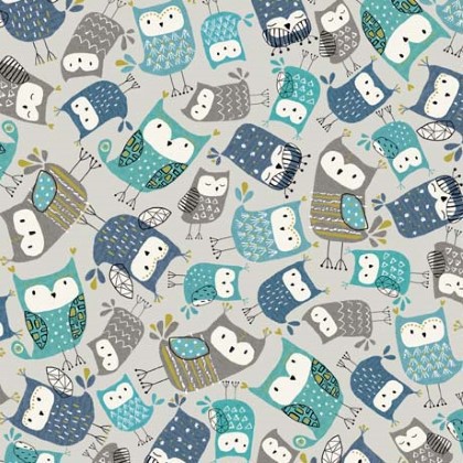 Adorable little owls are perched in contemporary style. A soothing color palette of cream, gray and aqua makes this an ideal collection for on-trend nursery décor, sweet quilts, and infant/juvenile accessories.