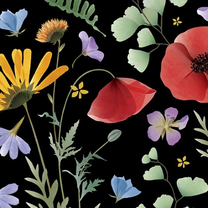 Quilting Treasures - Wildflowers - Wildflowers, Black