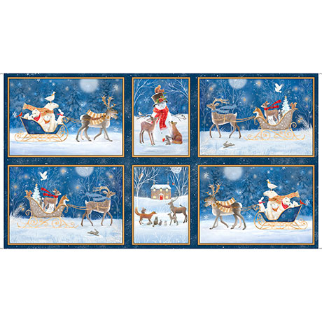 Stunning winter seasonal fabric done in rich navy and soft taupe's. This collection features deer, bunnies and foxes frolicking with their friends on the snow! Included in this collection are two panels, one with the woodland friends adoring the Christ Child and the other with large blocks of friends. Create holiday place mats or a festive table runner Make a stunning wall hanging for the season!