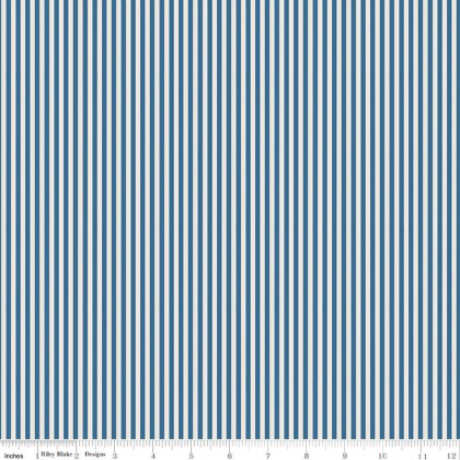 Riley Blake - Basic - 1/8" Ivory Stripe, Coastal Blue