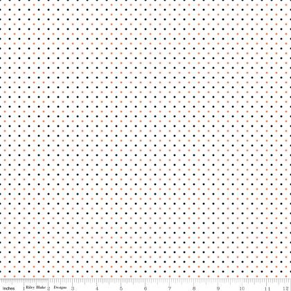 This Riley Blake Designs Basic fabric features small polka dots on a white background every 1/2" along the fabric.