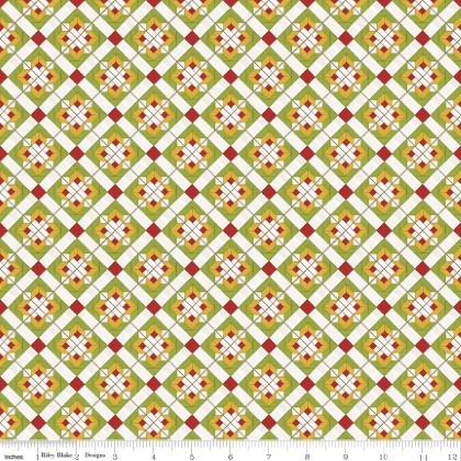 Riley Blake - Covered Bridges in Spring - Flower Block on Point, Green