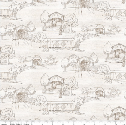 Covered Bridges in Spring by Tara Reed for Riley Blake Designs is great for quilting, apparel and home décor. This print features tone-on-tone covered bridge scenery.