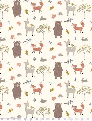 This double napped flannel by the RBD Designs for Riley Blake Designs is great for apparel, blankets, quilts and quilt backs. This print features trees, leaves, rabbits, deer, bear, fox, and more.