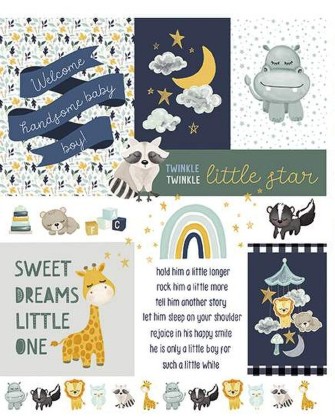 Riley Blake - Double Lush Velvet - 30" x 36" It's a Boy Panel, Navy/Green