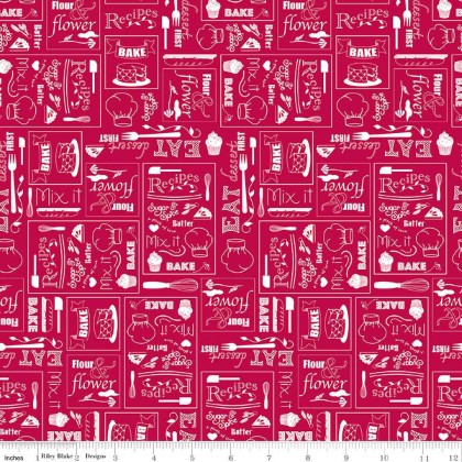 Flour & Flower by Jill Finley for Riley Blake Designs is great for quilting, apparel and home décor. This print features baking-themed text and icons.