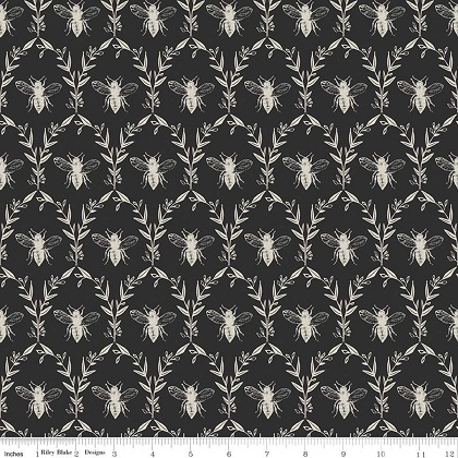 Honey Bee by My Mind's Eye for Riley Blake Designs is great for quilting, apparel and home décor. This print features a damask pattern with bees and leaves.