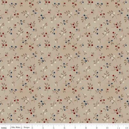Huckleberry Saltbox by Karen Walker of Laugh Yourself Into Stitches for Riley Blake Designs is great for quilting, apparel and home décor. This print features tossed sprigs of leaves and berries.