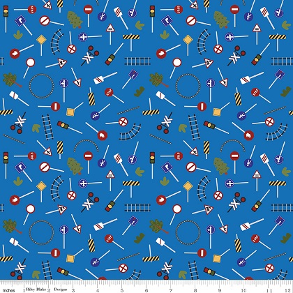 Riley Blake - It Takes a Village - Traffic Signs, Blue