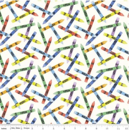 The New Box of Crayons collection for Riley Blake Designs is great for quilting, apparel and home décor. This print features the tossed Crayola crayons.