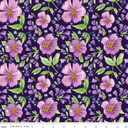 Plum Petals by Diane Labombarbe for Riley Blake Designs is great for quilting, apparel and home décor. This print features clusters of watercolor flowers.