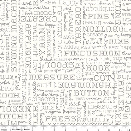 "Stitch" by Lori Holt of Bee in my Bonnet for Riley Blake Designs is great for quilting, apparel and home décor! This text print features sewing and crafting themed words. Designed by Lori Holt