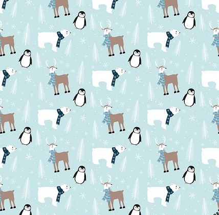 Winter Magic for Riley Blake Designs is great for quilting, apparel and home décor. This print features polar bears, penguins, reindeer, snowflakes, pine trees, and snowy dots.