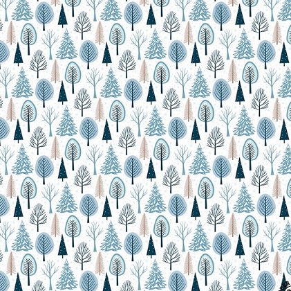 Winter Magic for Riley Blake Designs is great for quilting, apparel and home décor. This print features assorted trees on a snowy background.
